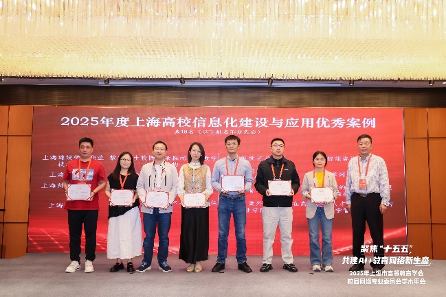 2025年10月25日,2025年上海市高等教育学会校园网络专业委员会学术年会暨信息化建设与应用优秀案例和信息化工作先进个人颁奖大会在长宁召开。年会以“聚焦“十五五”共建AI+教育网络新生态”为主题,围绕高校教育数字化转型、AI赋能教育数字化转型、校园网络新生态建设等重要议题进行分享、交流与探讨。